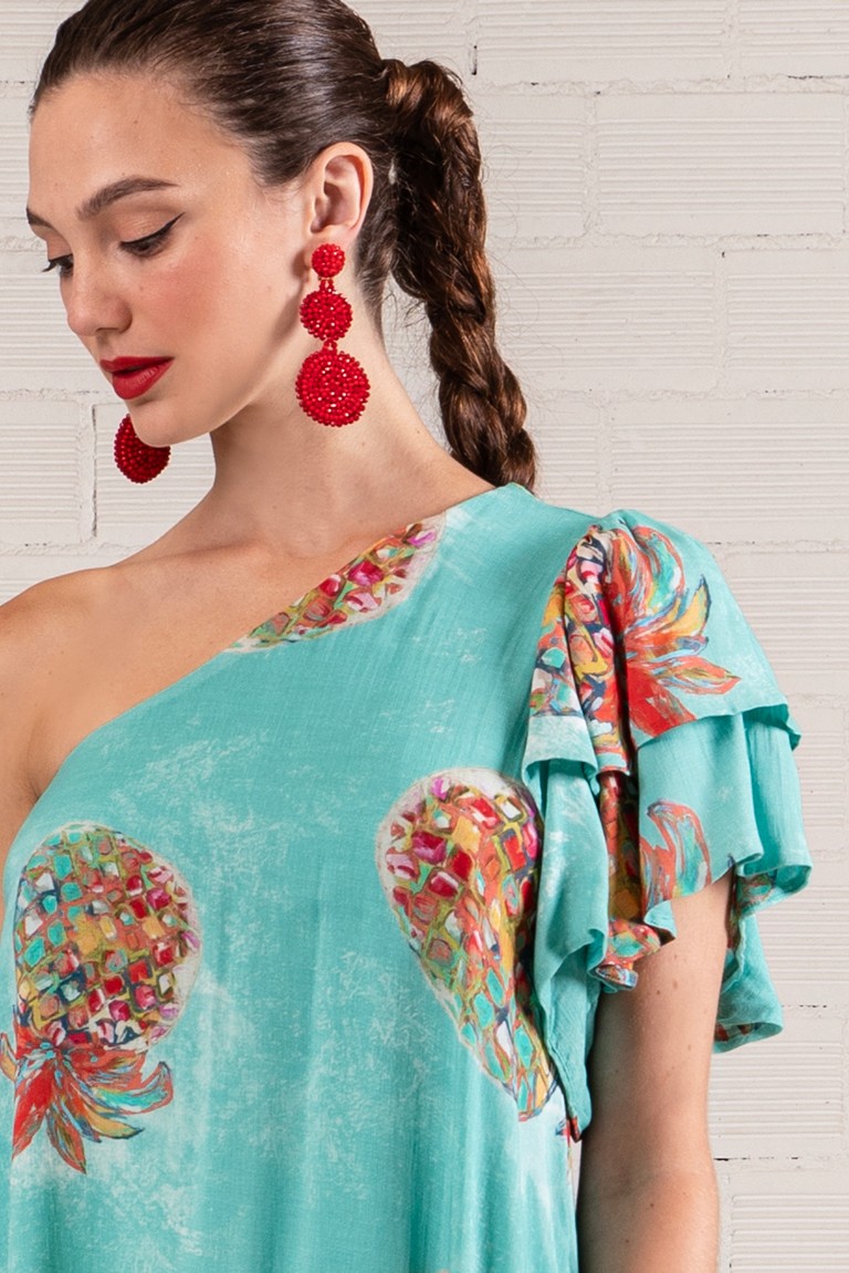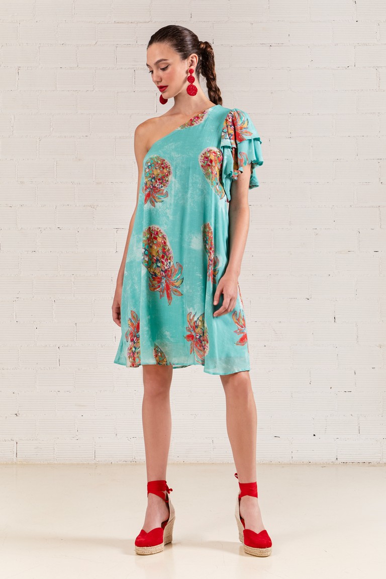 Εμπριμέ φόρεμα με έναν ώμο,