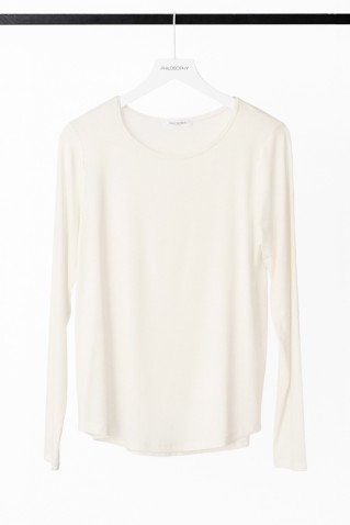 Σατέν cropped top με μακρύ μανίκι και στρογγυλή λαιμόκοψη