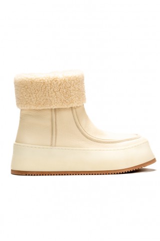 Δερμάτινο μποτάκι με γούνινη επένδυση, κλείσιμο με φερμουάρ και κορδόνια