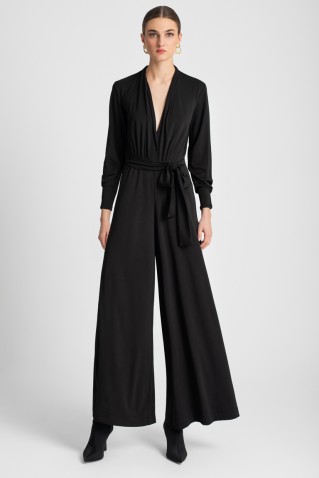 Ολόσωμη φόρμα με μακρύ μανίκι, ανοιχτό V μπροστά, φαρδιά στα πόδια και ασορτί ζώνη95% πολυεστέρας, 5% σπάντεξΣχεδιασμένη και κατασκευασμένη στην Ελλάδα