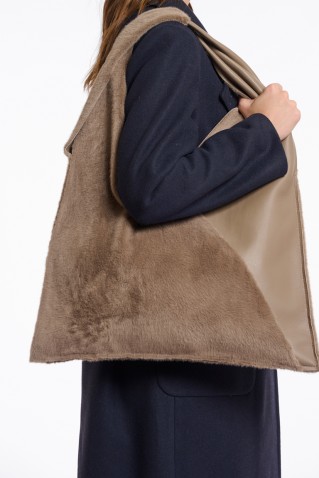 Τσάντα ώμου από τεχνητή γούνα με απαλή, βελούδινη υφή και κομψές λεπτομέρειες από τεχνητό δέρμα. Σχεδιασμένη σε oversized σχήμα, συνδυάζει άνεση και στυλ, καθιστώντας την ένα ευέλικτο αξεσουάρ τόσο...