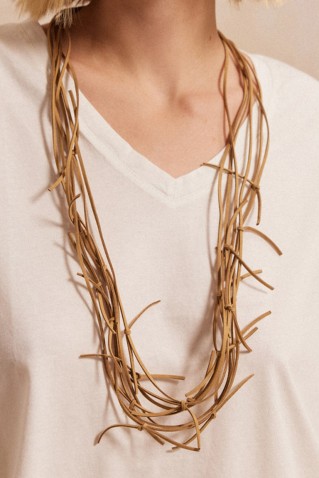 Αυτό το μακρύ κολιέ από συνθετικό σουέτ διαθέτει πολλά κορδόνια και κόμπους, προσφέροντας μια μοναδική αισθητική. Η ελαφριά υφή του σουέτ και ο συνδυασμός των κορδονιών δημιουργούν μια εντυπωσιακή,...