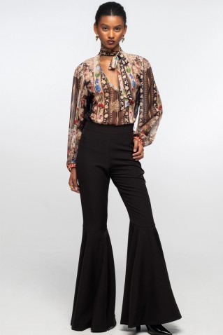 Ψηλόμεση παντελόνα με έντονα φαρδιά μπατζάκιαΚρυφό φερμουάρΜεταλλική λεπτομέρεια ChakaΈλληνες σχεδιαστέςΠαράγεται εξ’ ολοκλήρου στην ΕλλάδαΜοναδικά ρούχα με ξεχωριστά prints και μια πινελιά...