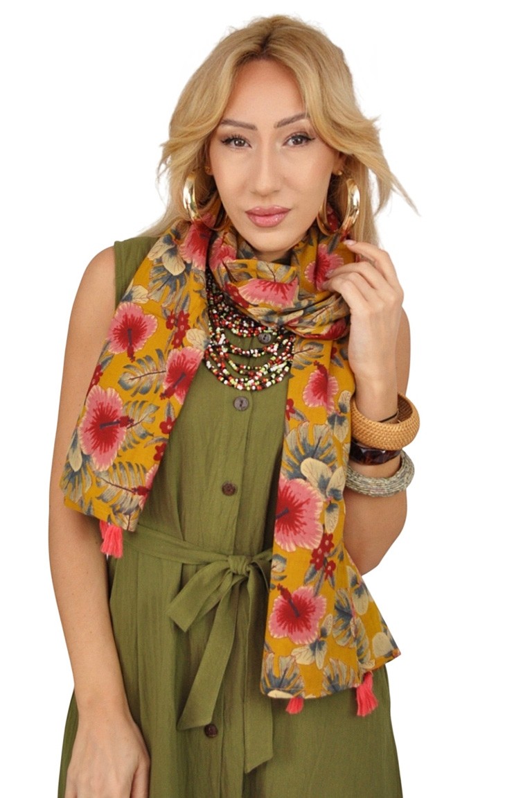Printed scarf with fringes