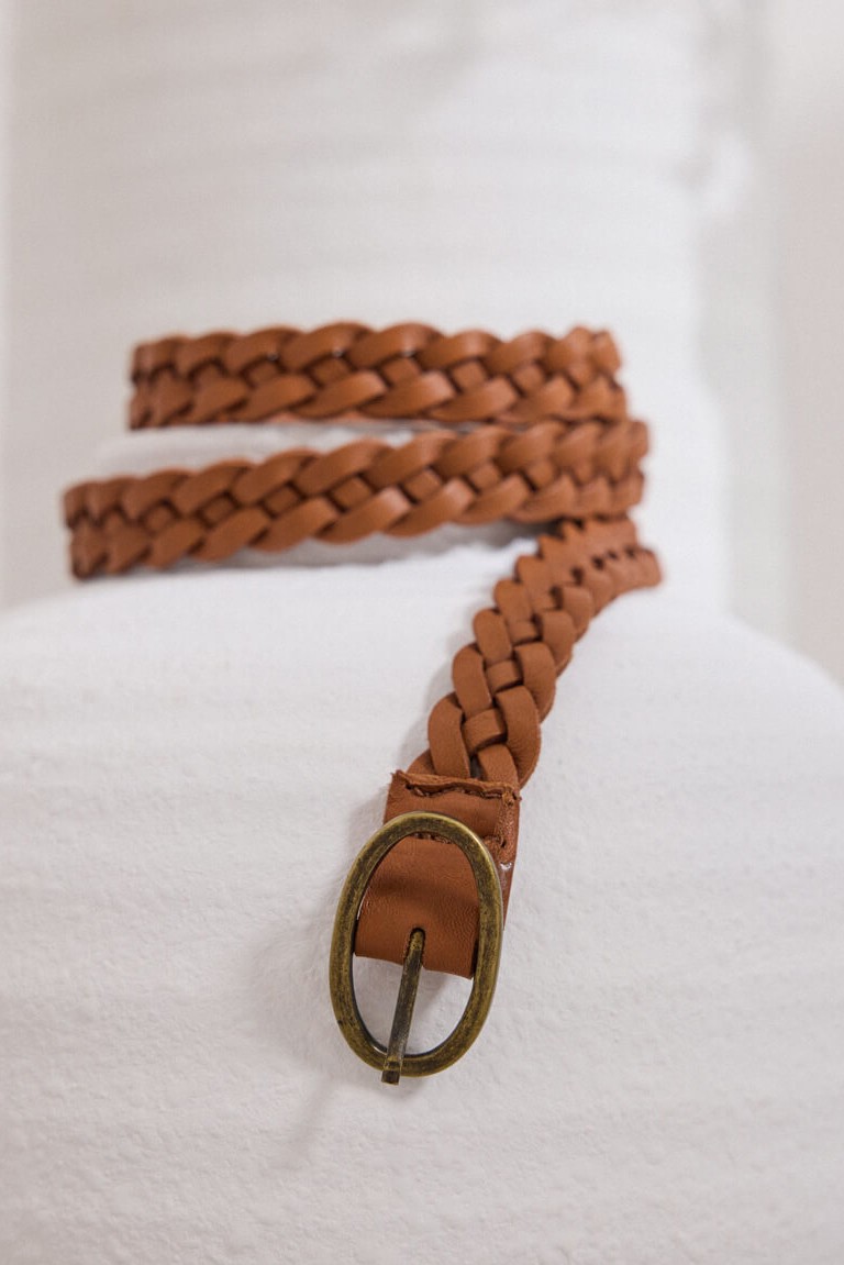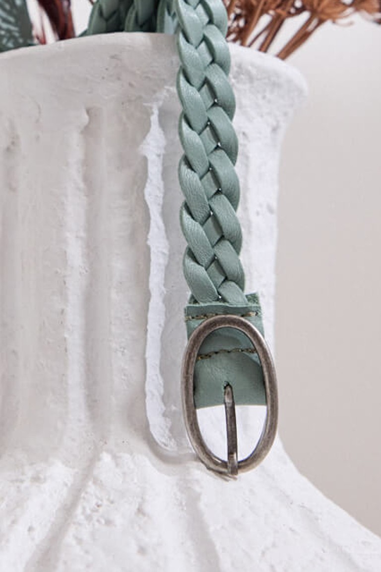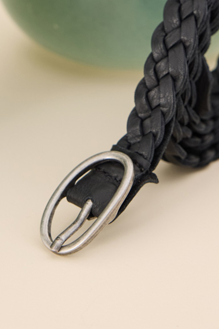 Leather belt with a fine weave that adds a special texture and elegance. With a length of 1 m. and a width of 2 cm. The construction without predetermined holes allows the clasp to be tied at any point of the weave, while the metal buckle in a discreet finish completes the design with functionality and clean aesthetics. 100% Leather Designed and manufactured in Greece
