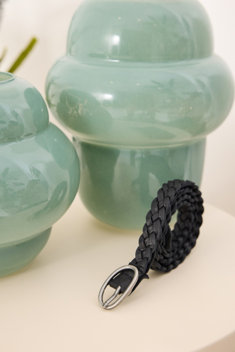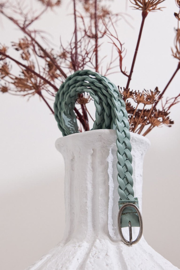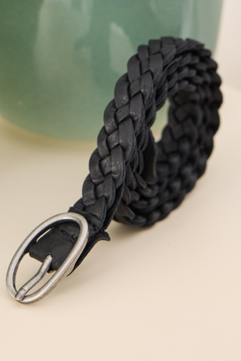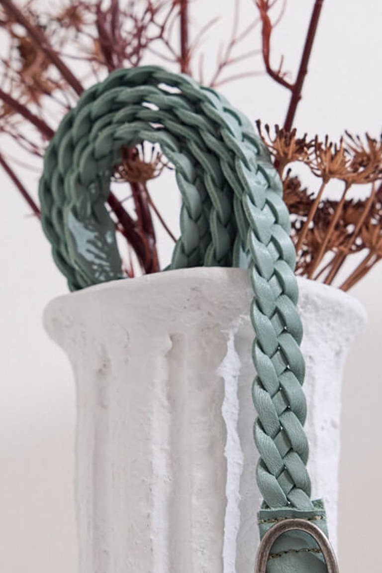 Leather belt with a fine weave that adds a special texture and elegance. With a length of 1 m. and a width of 2 cm. The construction without predetermined holes allows the clasp to be tied at any point of the weave, while the metal buckle in a discreet finish completes the design with functionality and clean aesthetics. 100% Leather Designed and manufactured in Greece
