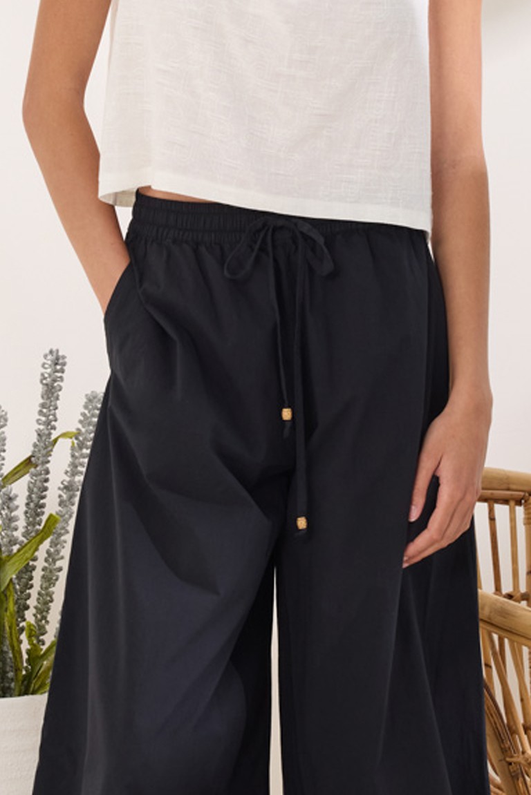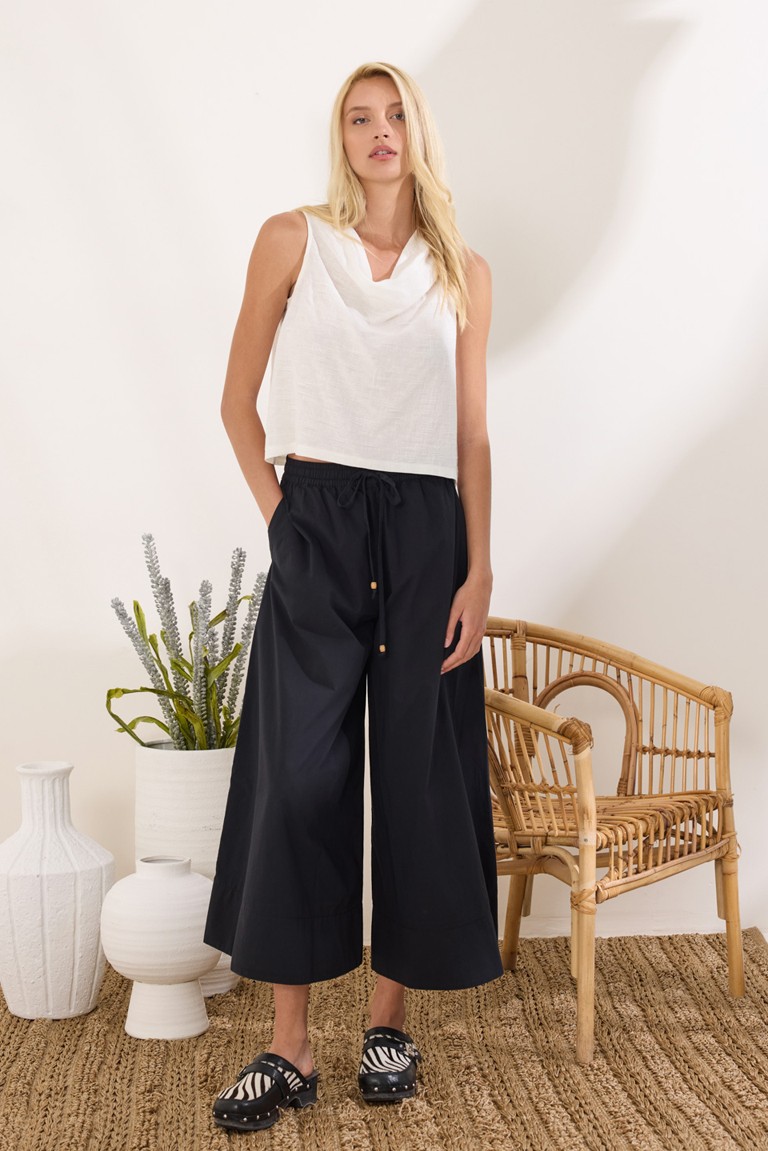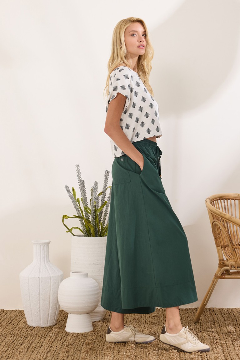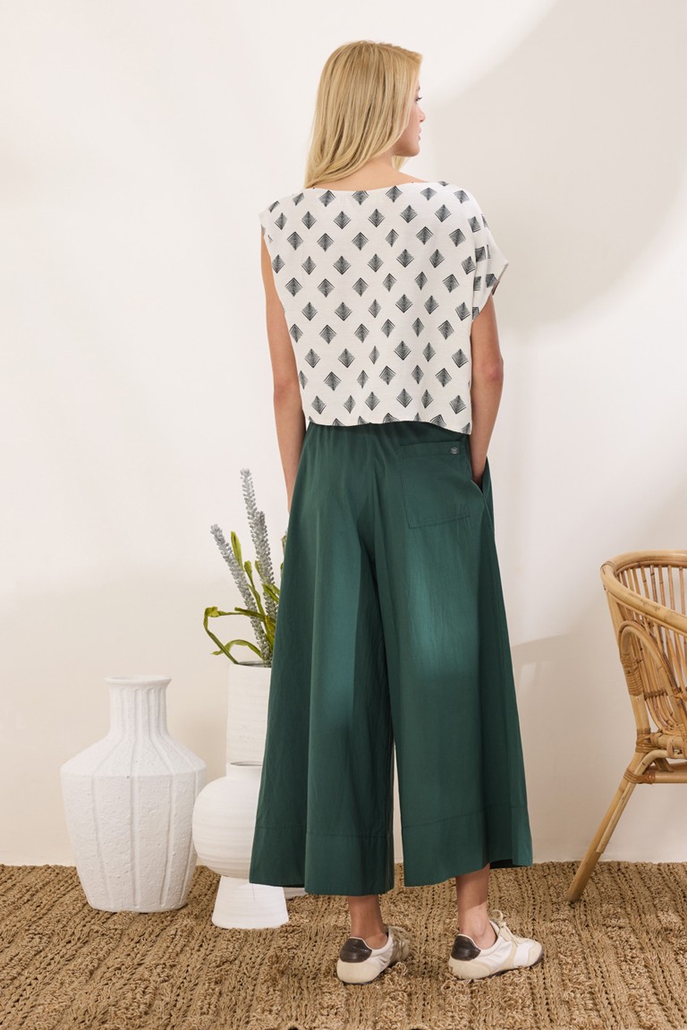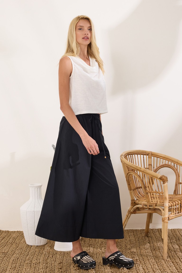 Jupe culotte pants made of cotton fabric with a dynamic design character. It features an elastic waist for a comfortable fit, pockets and a cropped length with a wide hem at the bottom, creating a strong statement. “This product has been made with love and respect for the environment using natural fibers.” 100% cotton Designed and manufactured in Greece
