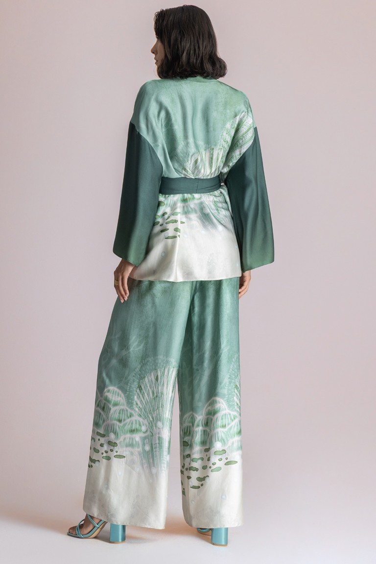 Printed satin kimono