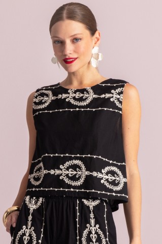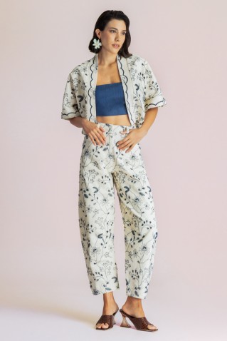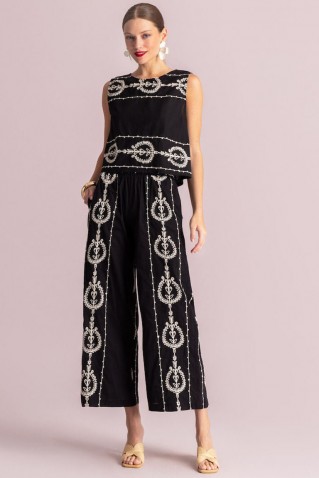 Pants with embroidered details, elastic waist and matching belt 100% cotton Designed and made in Greece