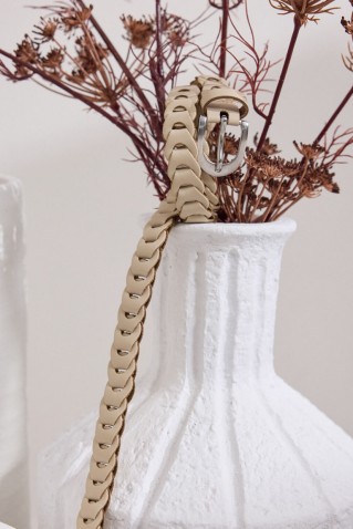 Leather belt with a fine weave that adds a special texture and elegance. With a length of 1 m. and a width of 2 cm. The construction without predetermined holes allows the clasp to be tied at any...