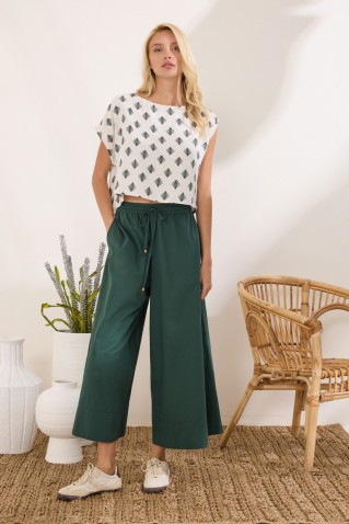 Jupe culotte pants made of cotton fabric with a dynamic design character. It features an elastic waist for a comfortable fit, pockets and a cropped length with a wide hem at the bottom, creating a...